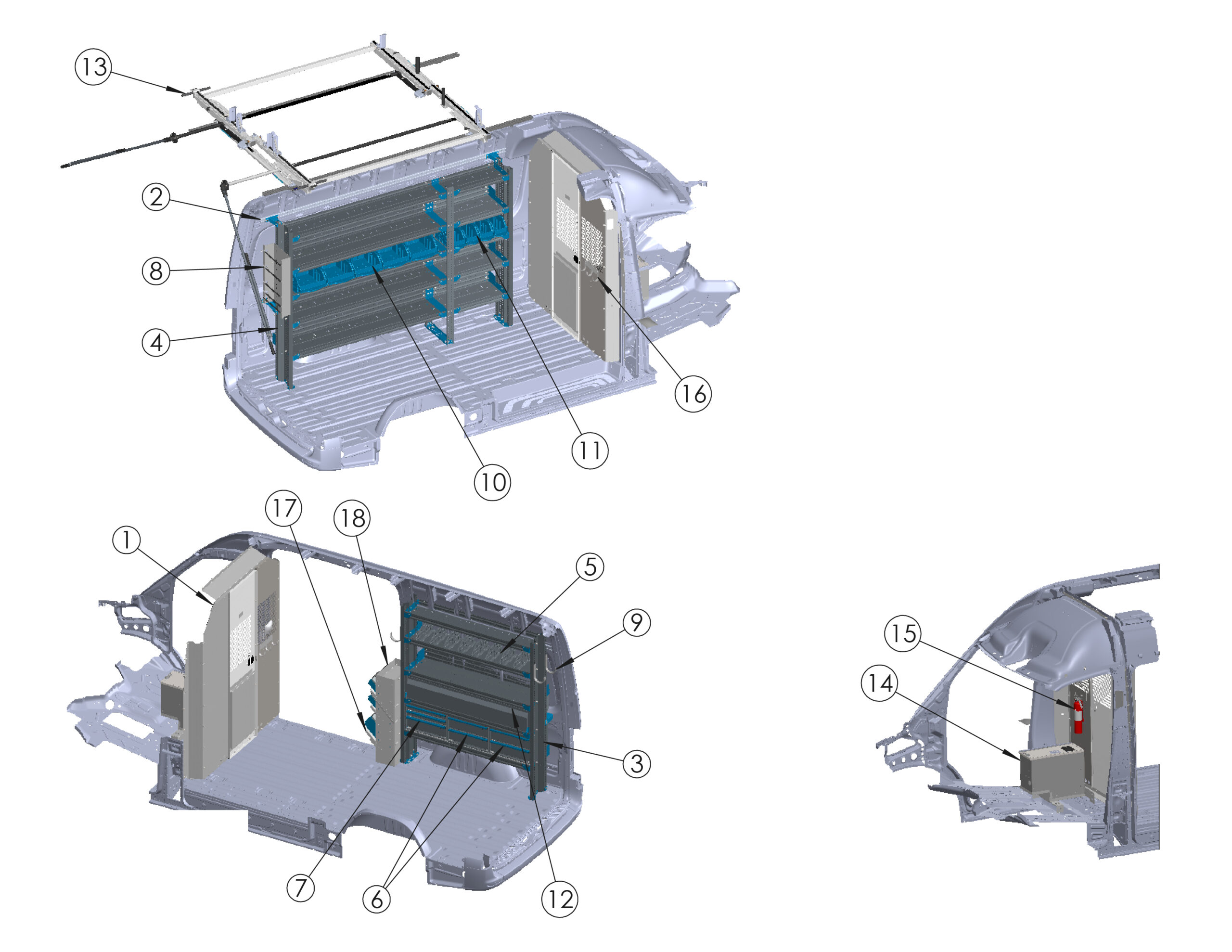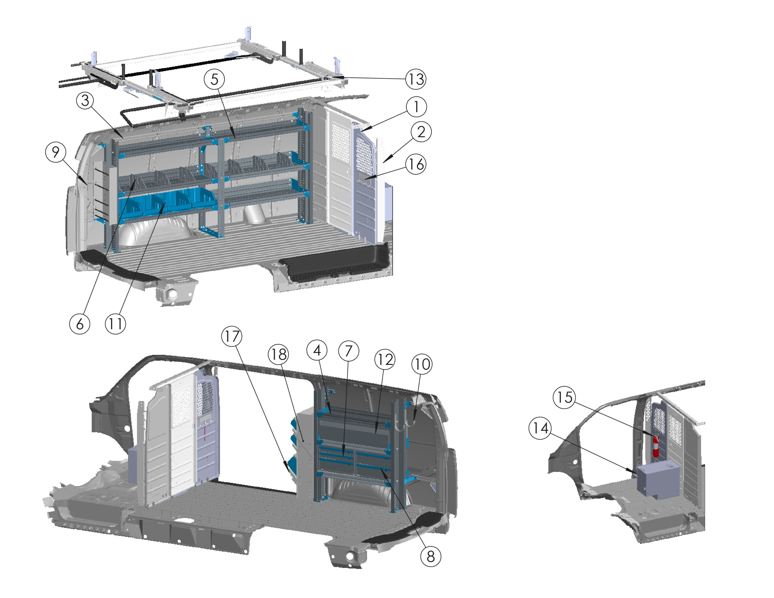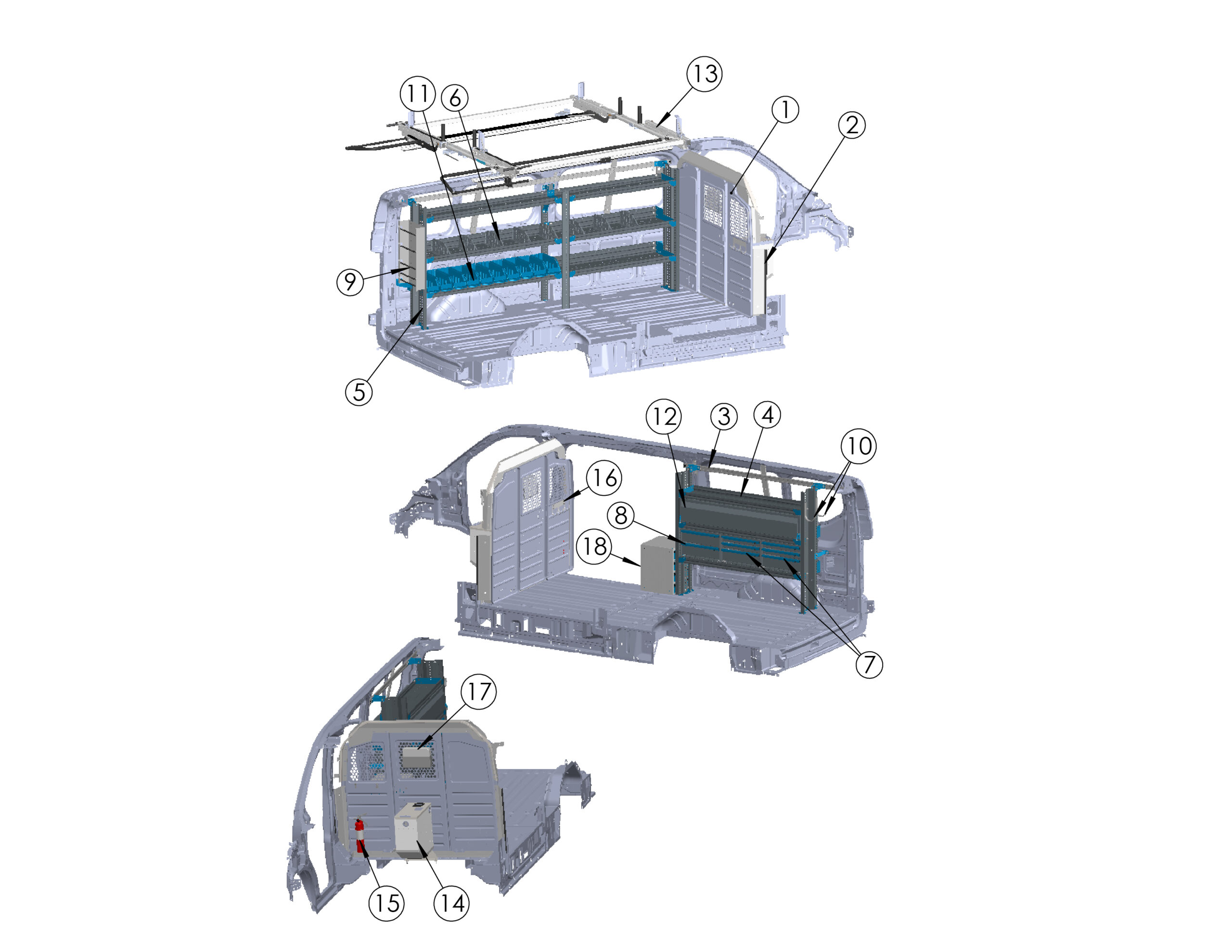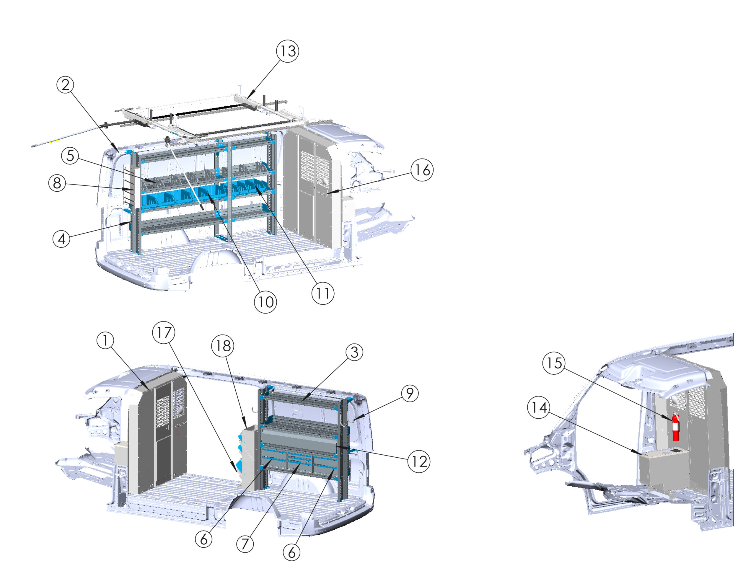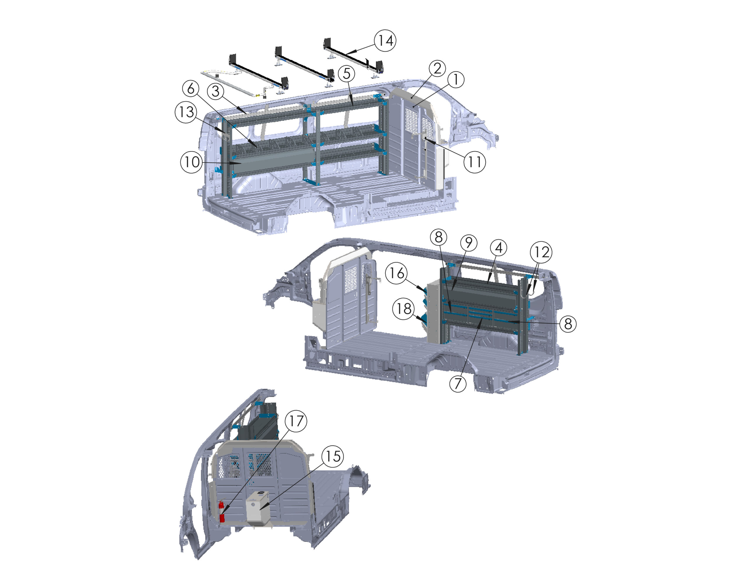 | 13 | 3-Bar Utility Rack w/ (6)6" Uprights & Rear Roller (Excludes High Roof Extended) - No Mounts | 3B6RRFTW | x1 |