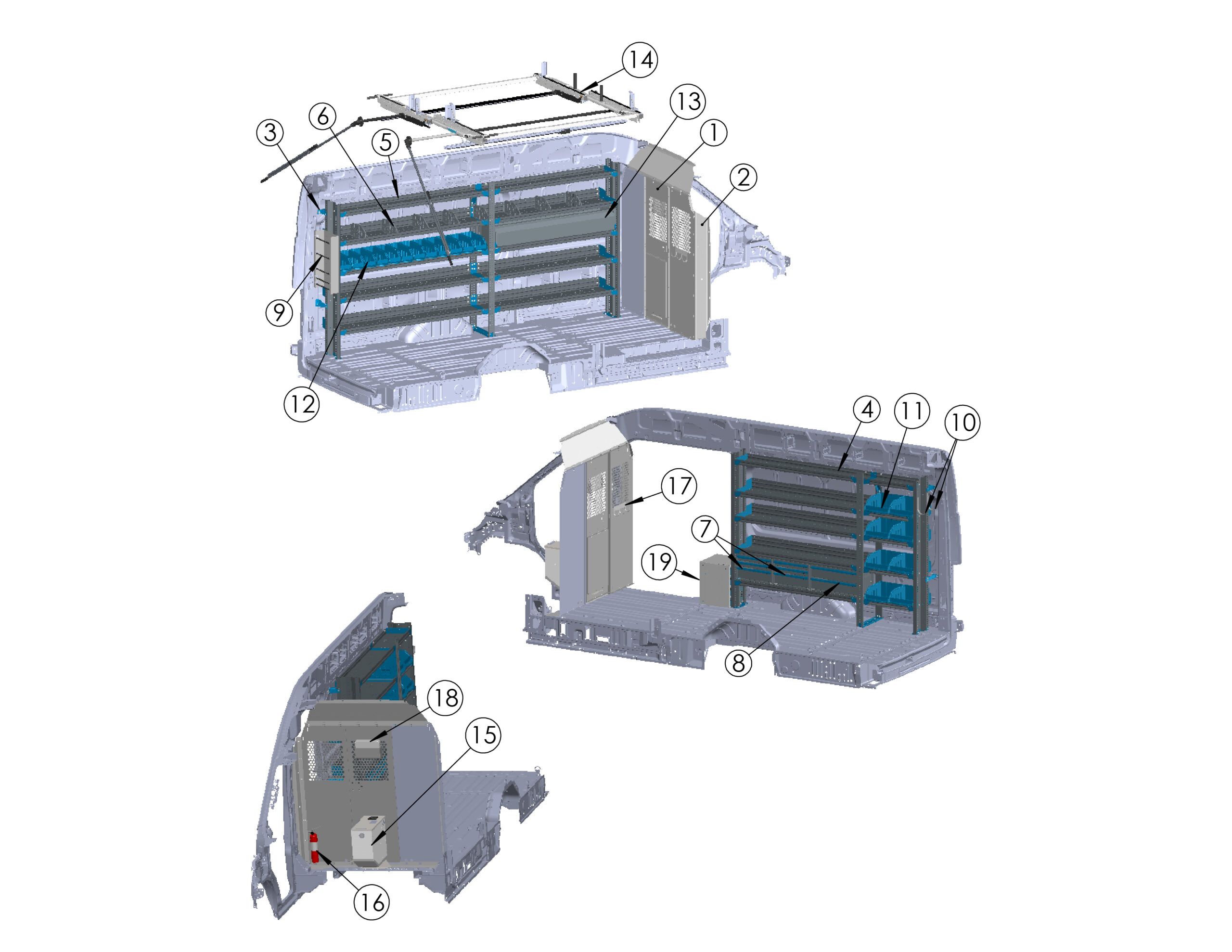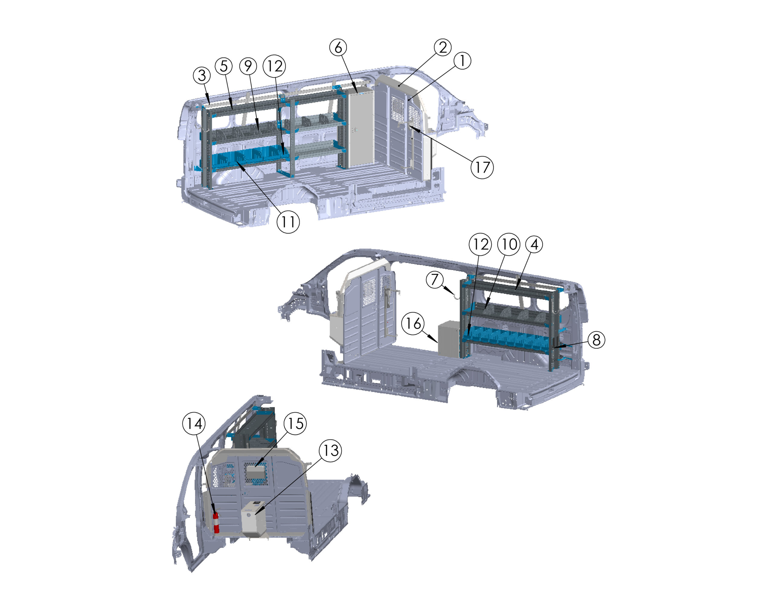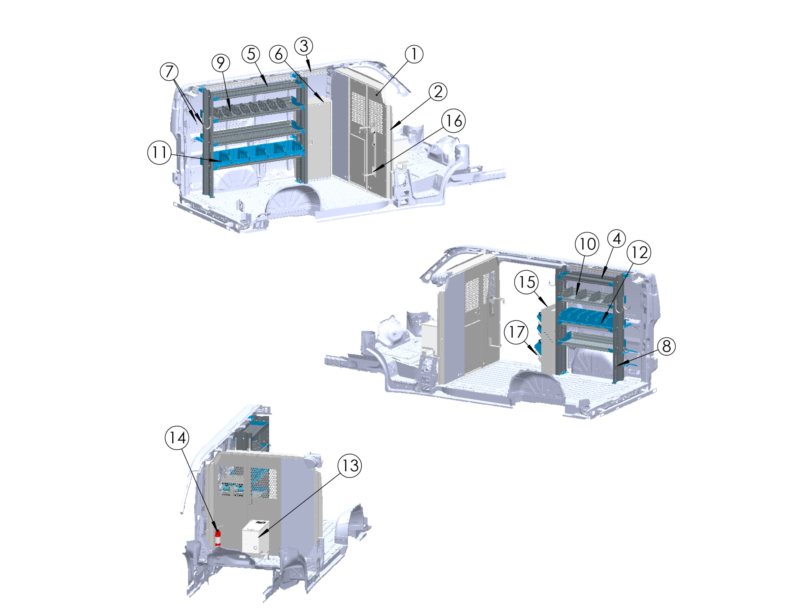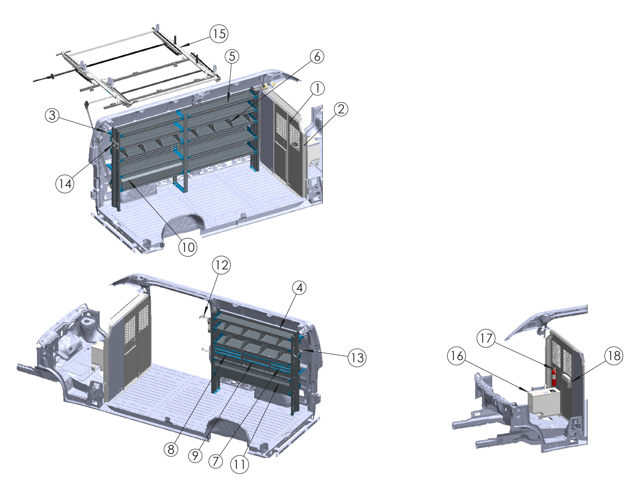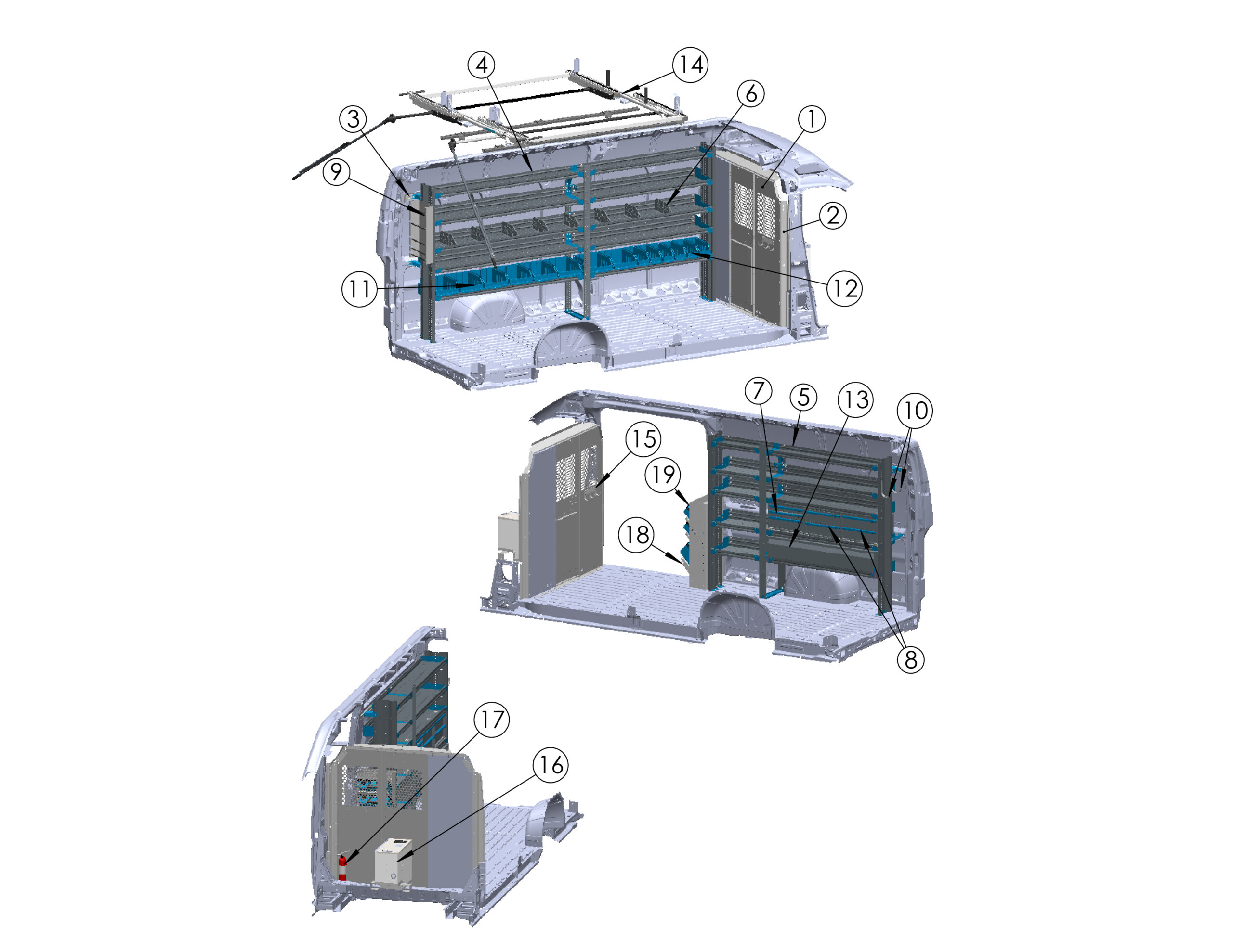| 13 | 3-Bar Utility Rack w/ (6)6" Uprights & Rear Roller (Excludes High Roof Extended) - No Mounts | 3B6RRFTW | x1 |