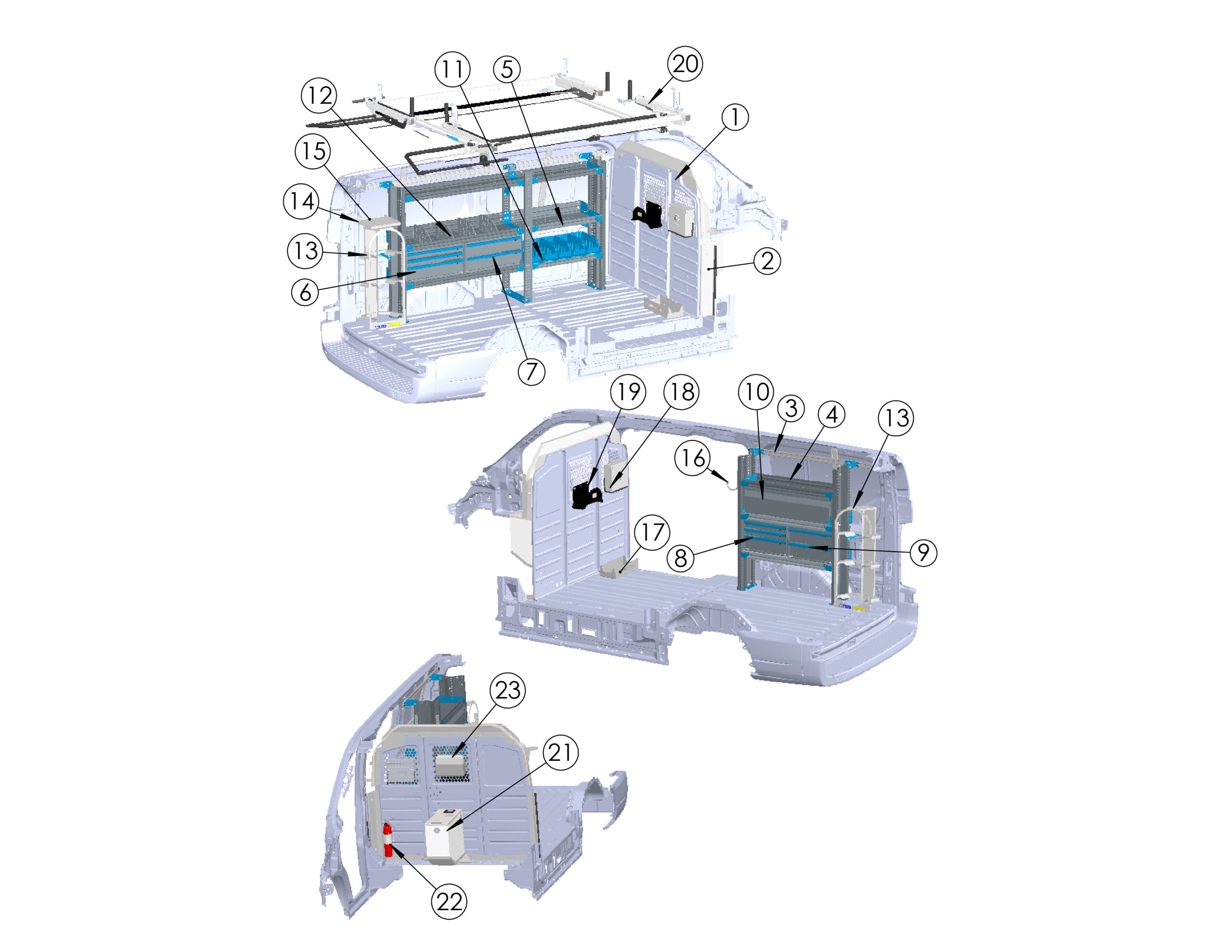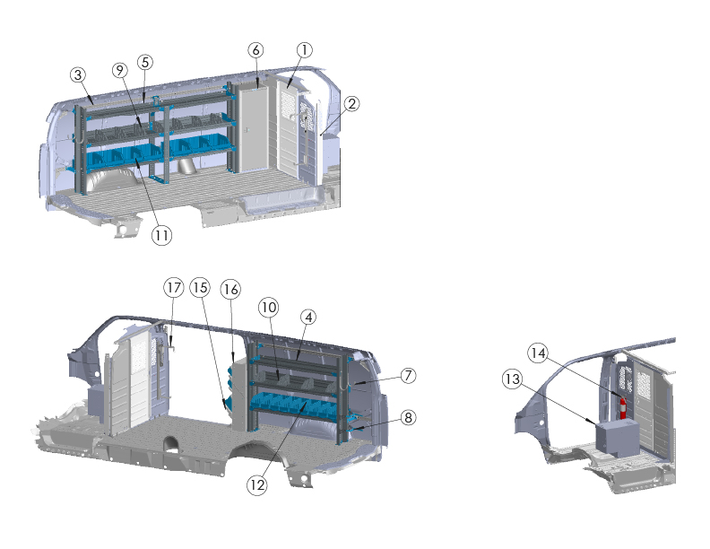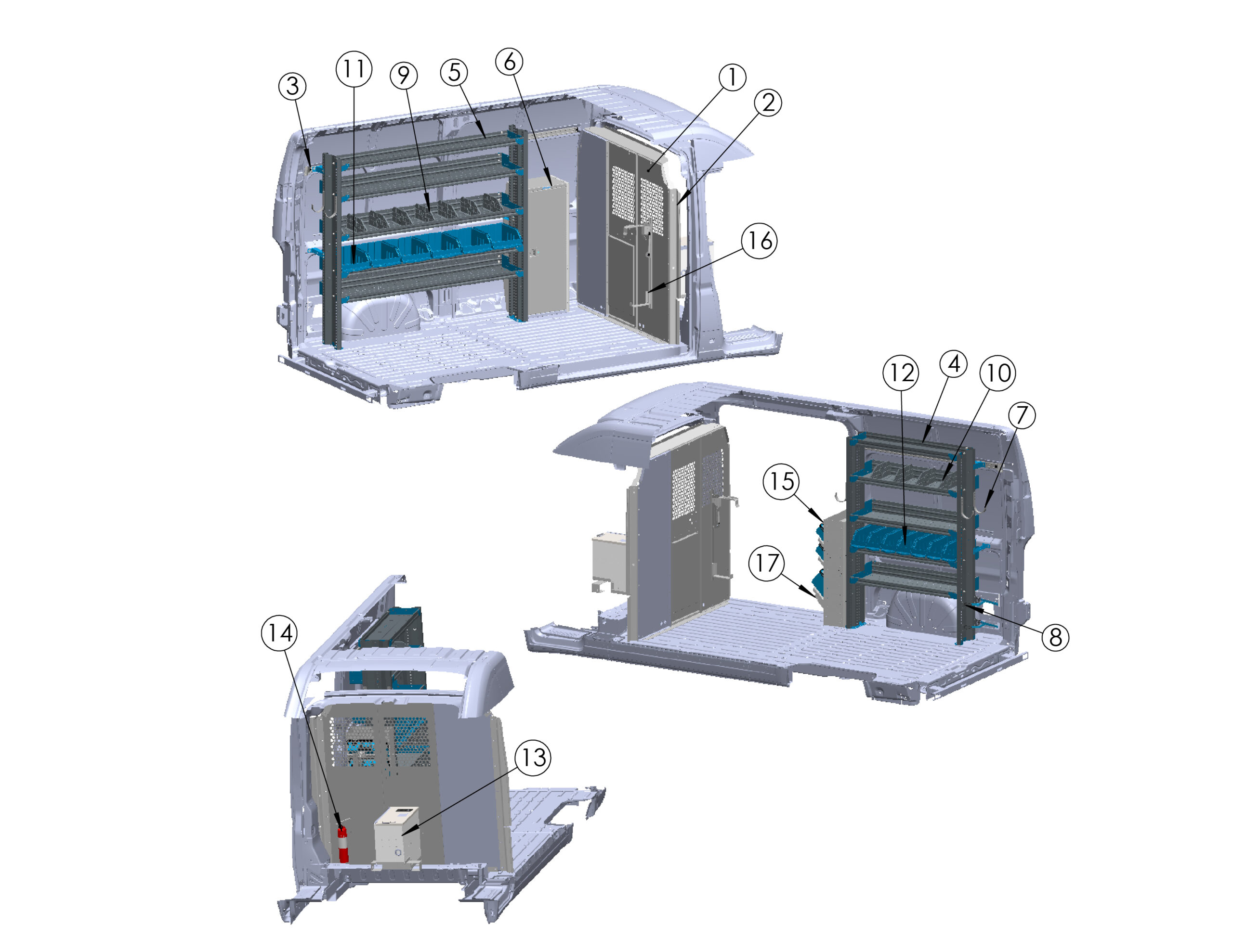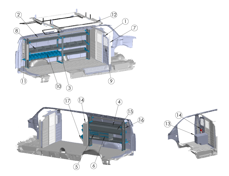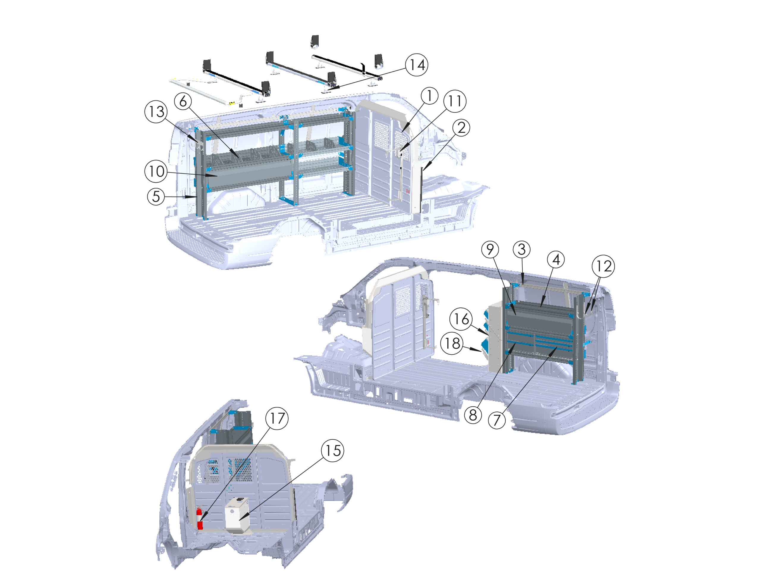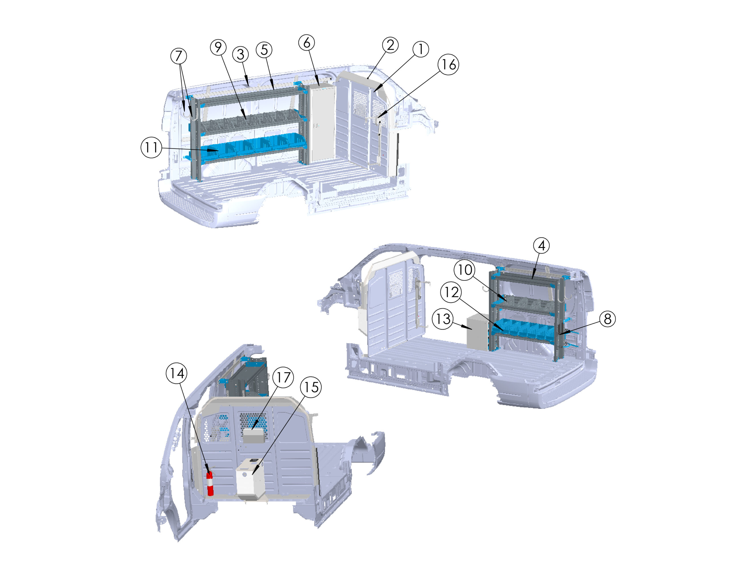 | 13 | 3-Bar Utility Rack w/ (6)6" Uprights & Rear Roller (Excludes High Roof Extended) - No Mounts | 3B6RRFTW | x1 |