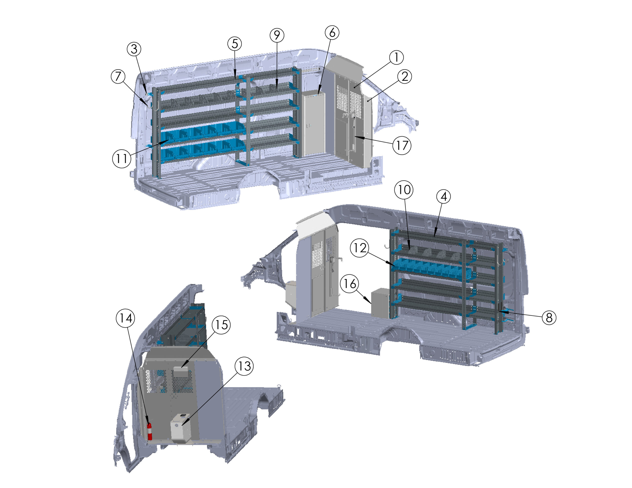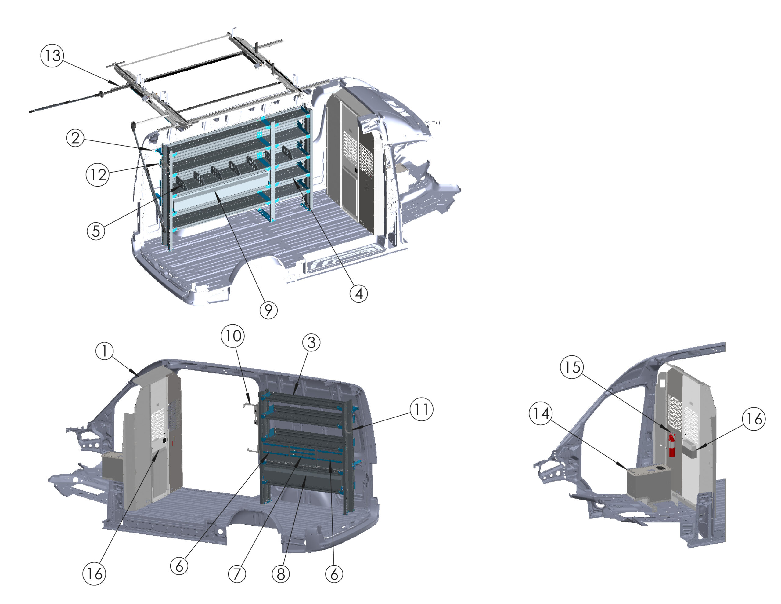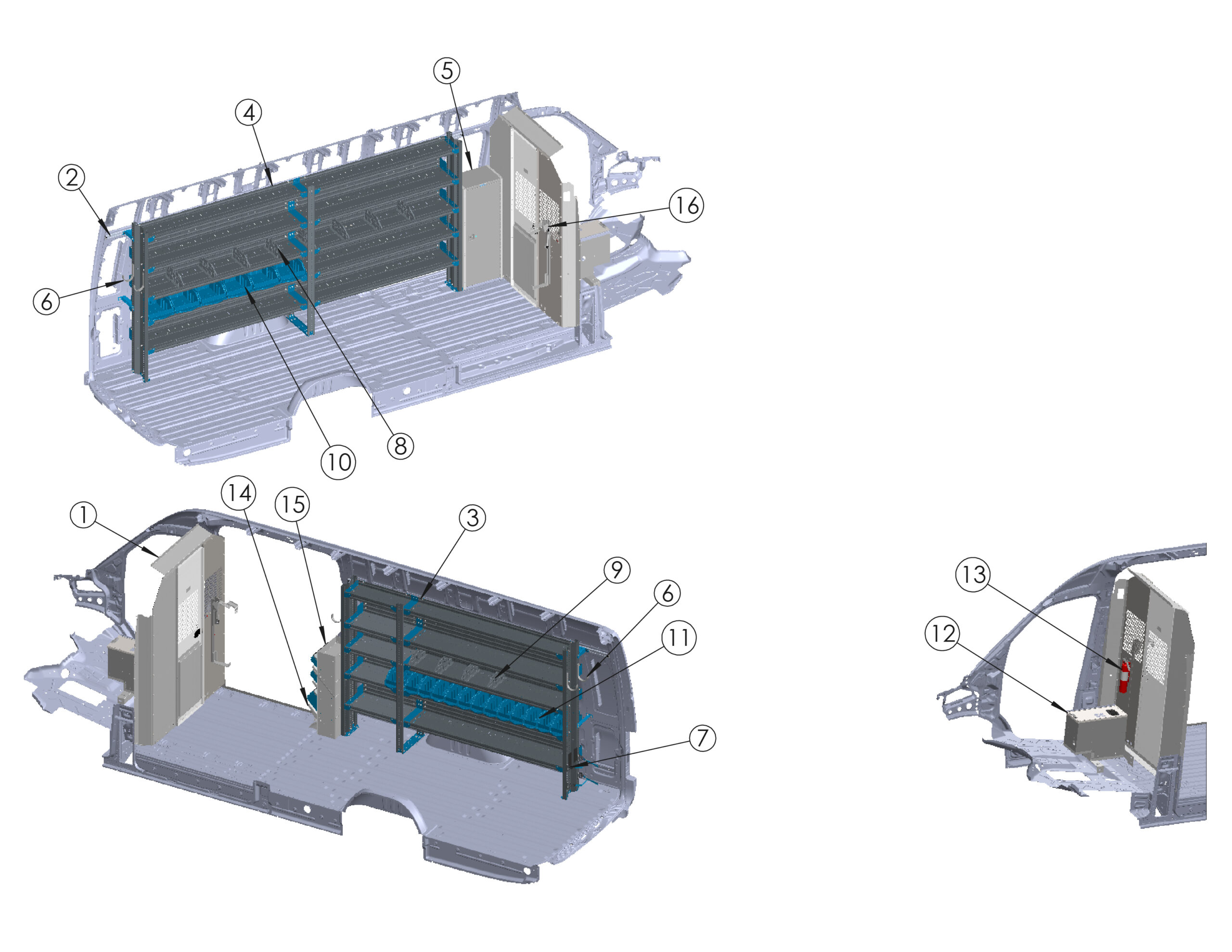 | 1 | 5-Shelf Unit, Driver Side, 16x96 (R66/F30) | AS-2T16Z4DSA5 | x1 |