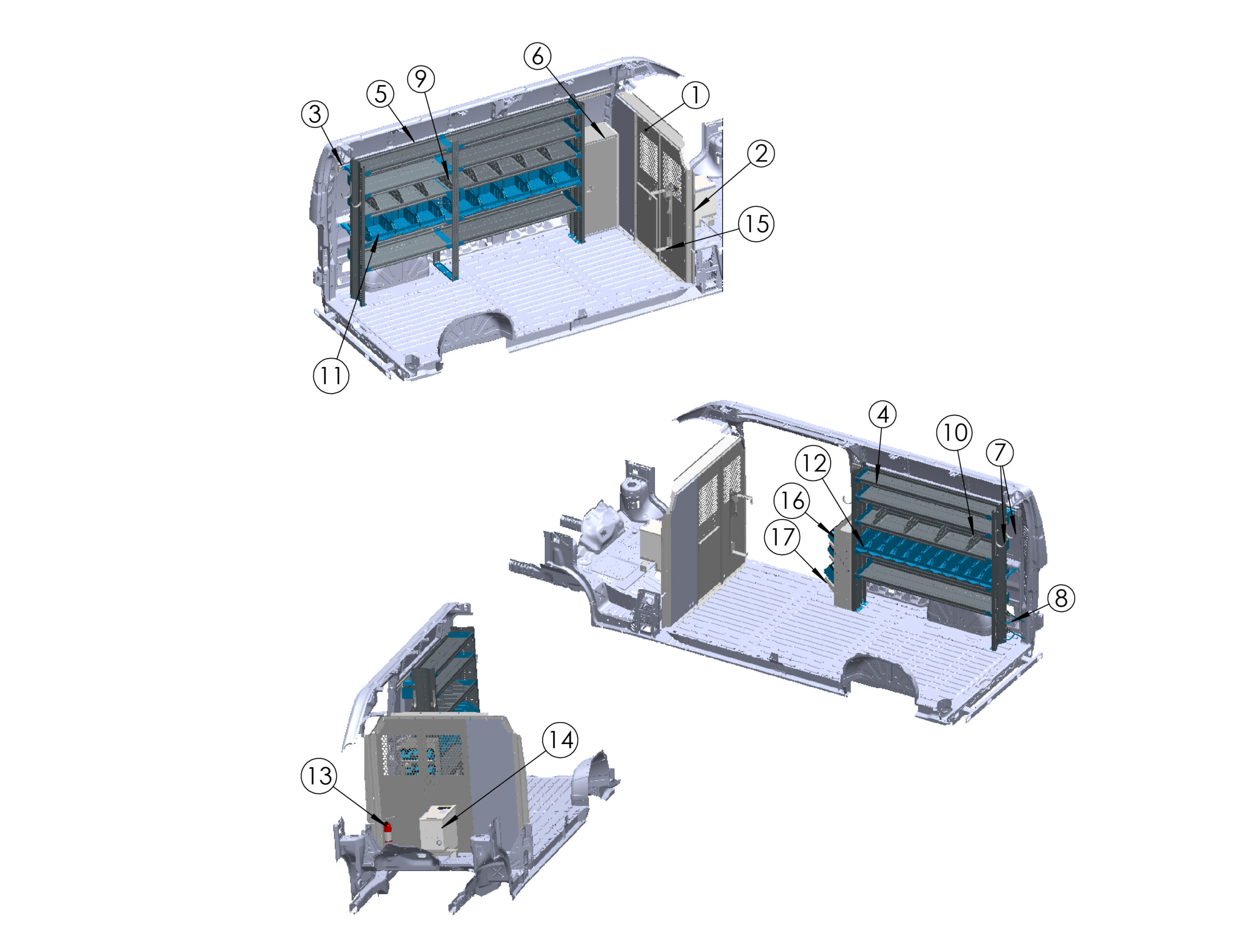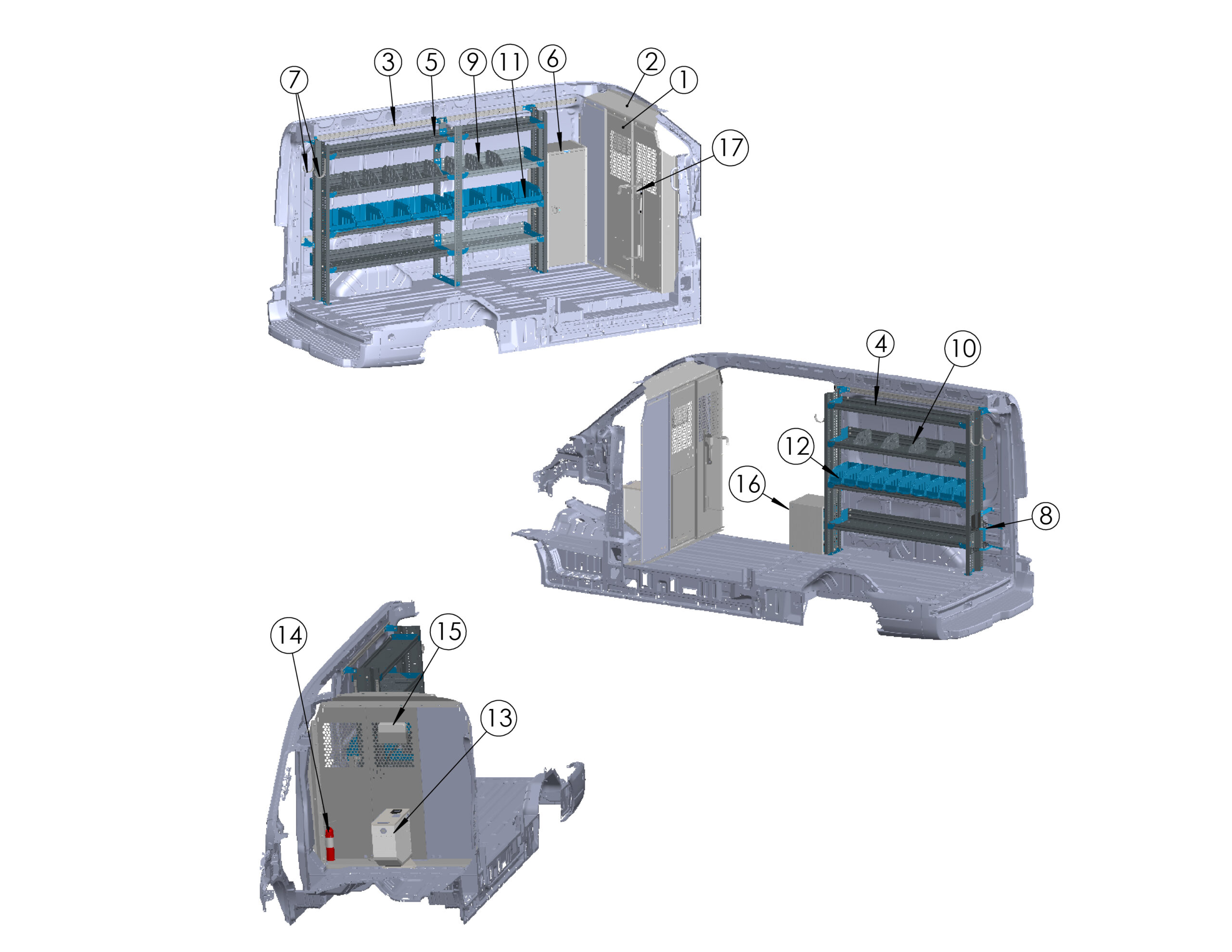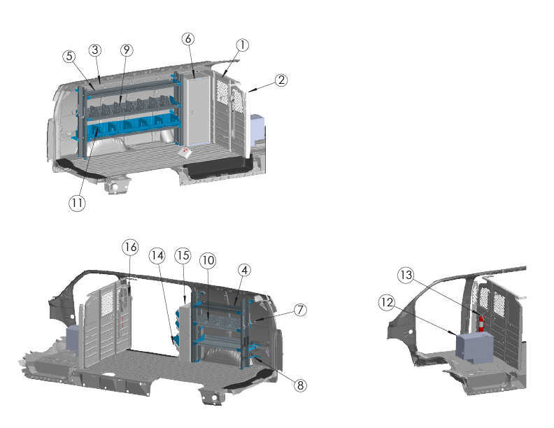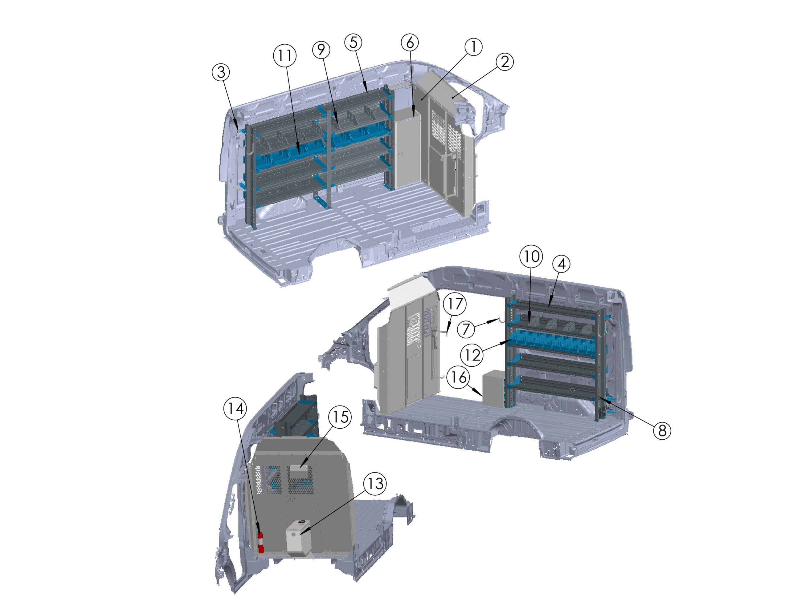 | 1 | 5-Shelf Unit, Driver Side, 16x96 (R66/F30) | AS-2T16Z4DSA5 | x1 |