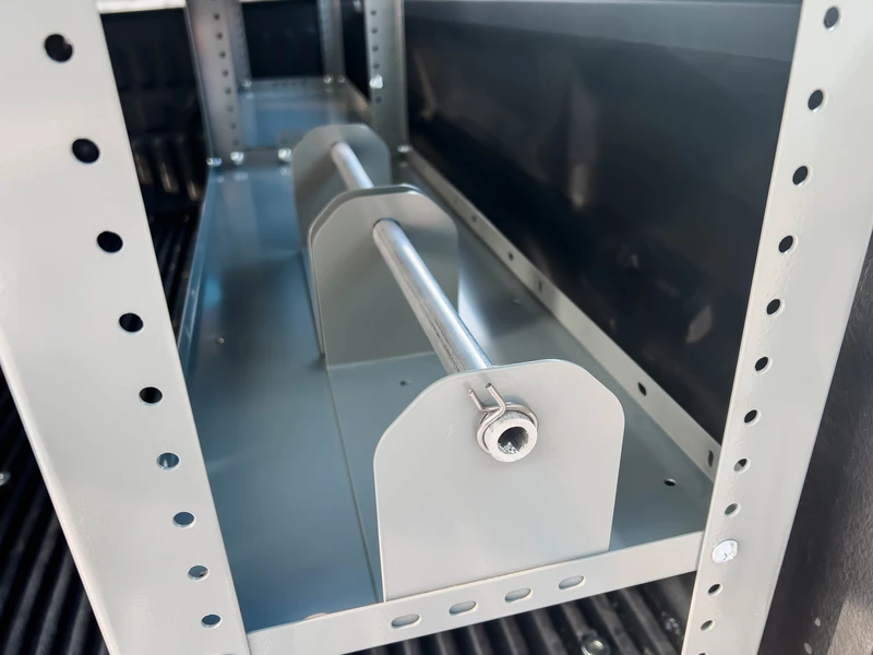 Keep your cables, wire spools, or similar items neatly organized and ready to use. Designed for efficiency, it allows smooth, tangle-free dispensing and mounts easily to both standard and next-generation van shelving. Built from durable materials to withstand daily wear and tear, it’s the perfect solution for electricians, contractors, and mobile professionals who need reliable organization on the go.