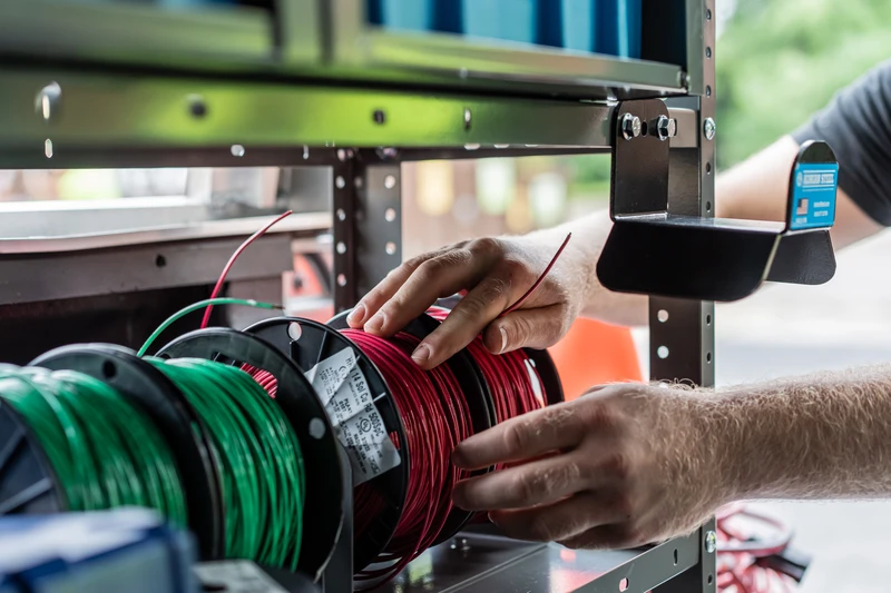 Accommodates single spools ranging from 2”-6” in diameter, keeping it secure and tangle-free in any vehicle. Designed to work with our Next-Gen shelving systems and accessories.