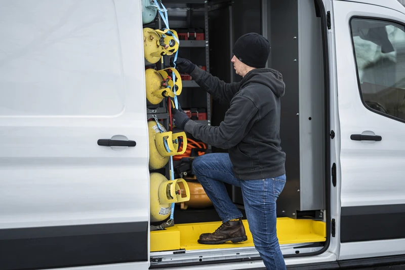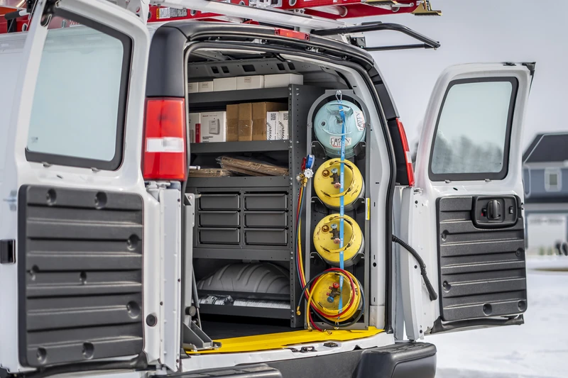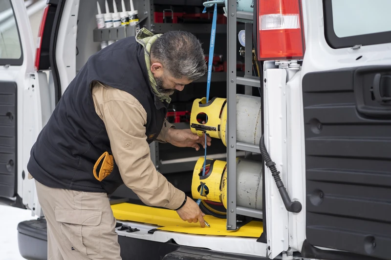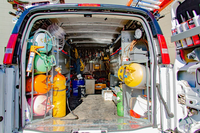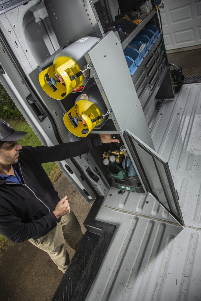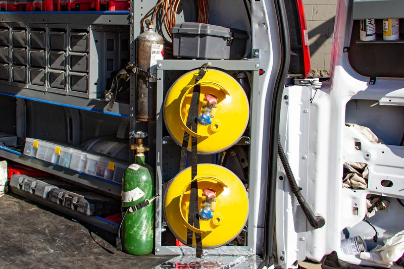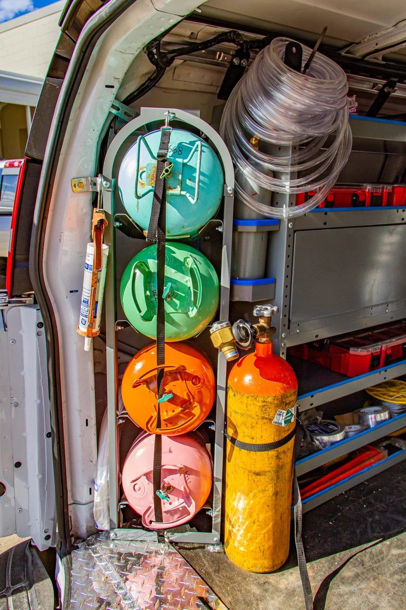 Tanks are heavy and climbing in and out of the van frequently to reach your tanks takes a toll on your body. Our tank storage solutions make your job easier by placing your tanks near the side or rear doors for easy access.