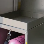 Utilize the top of 30 lbs. tank racks for additional storage with the 30 lbs. tank rack tray.