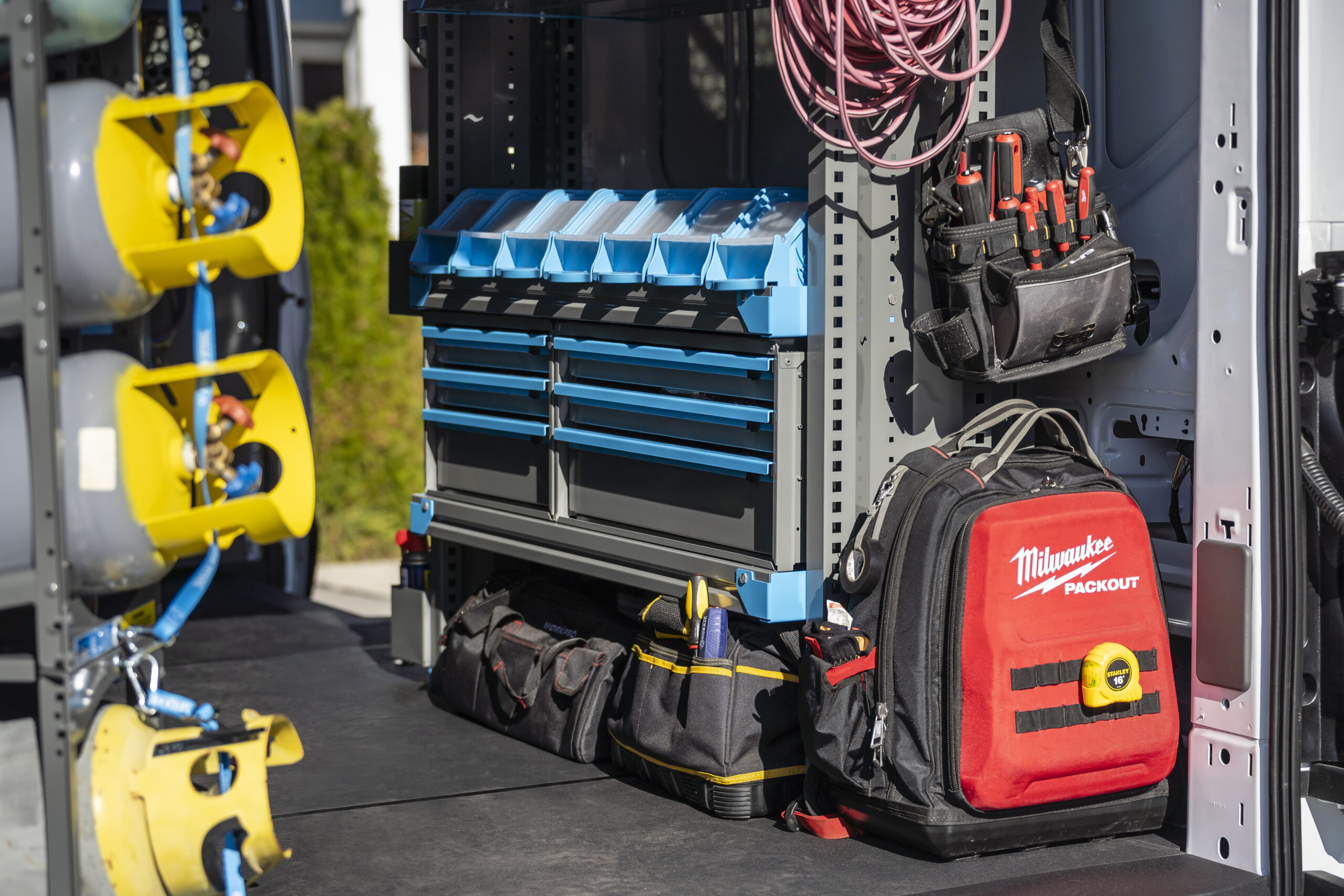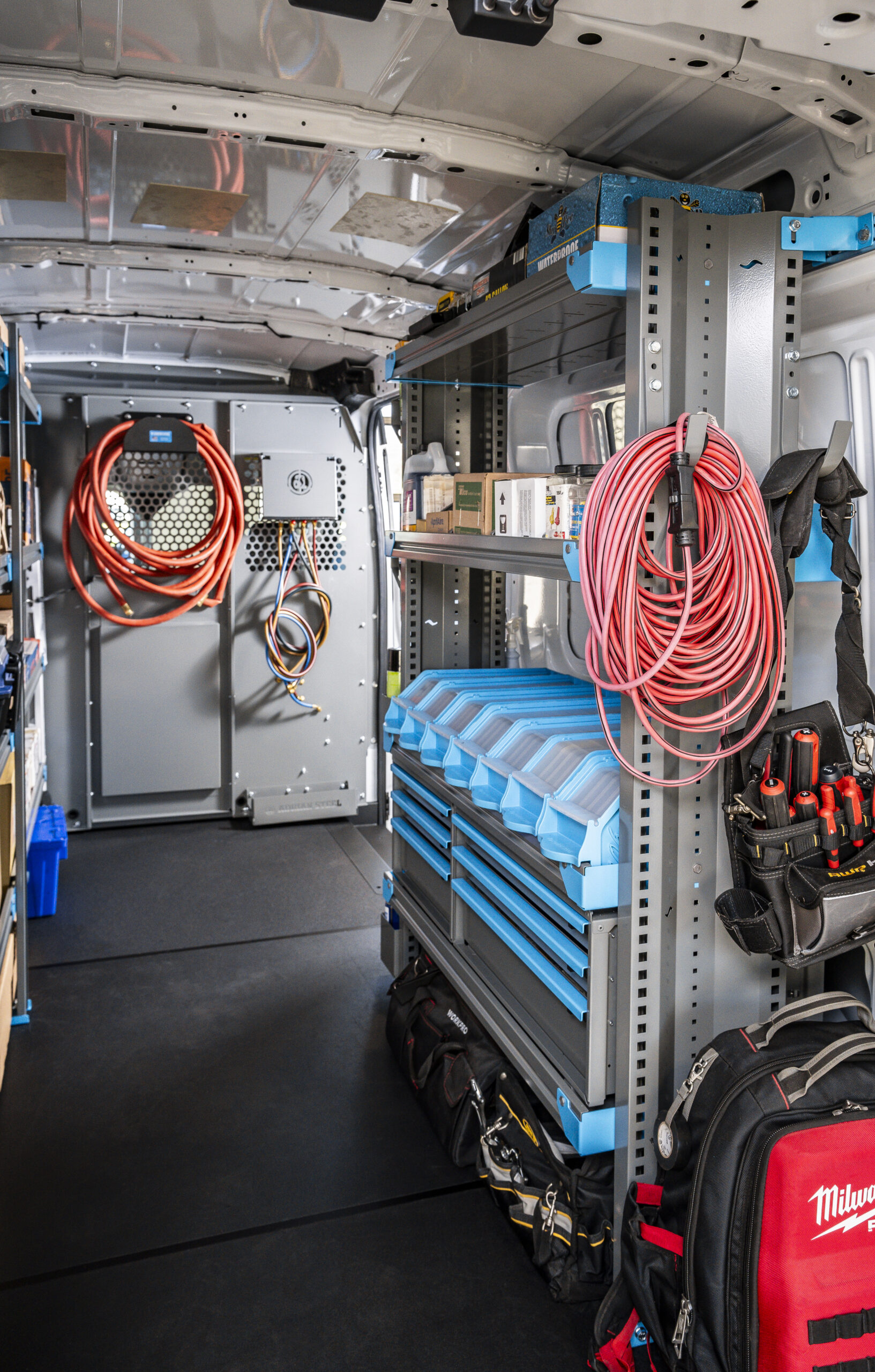 Built from heavy-duty, powder-coated steel or aluminum, these lockable doors create enclosed storage areas that keep tools and equipment safe, secure, and out of sight—while maintaining a clean, professional look.