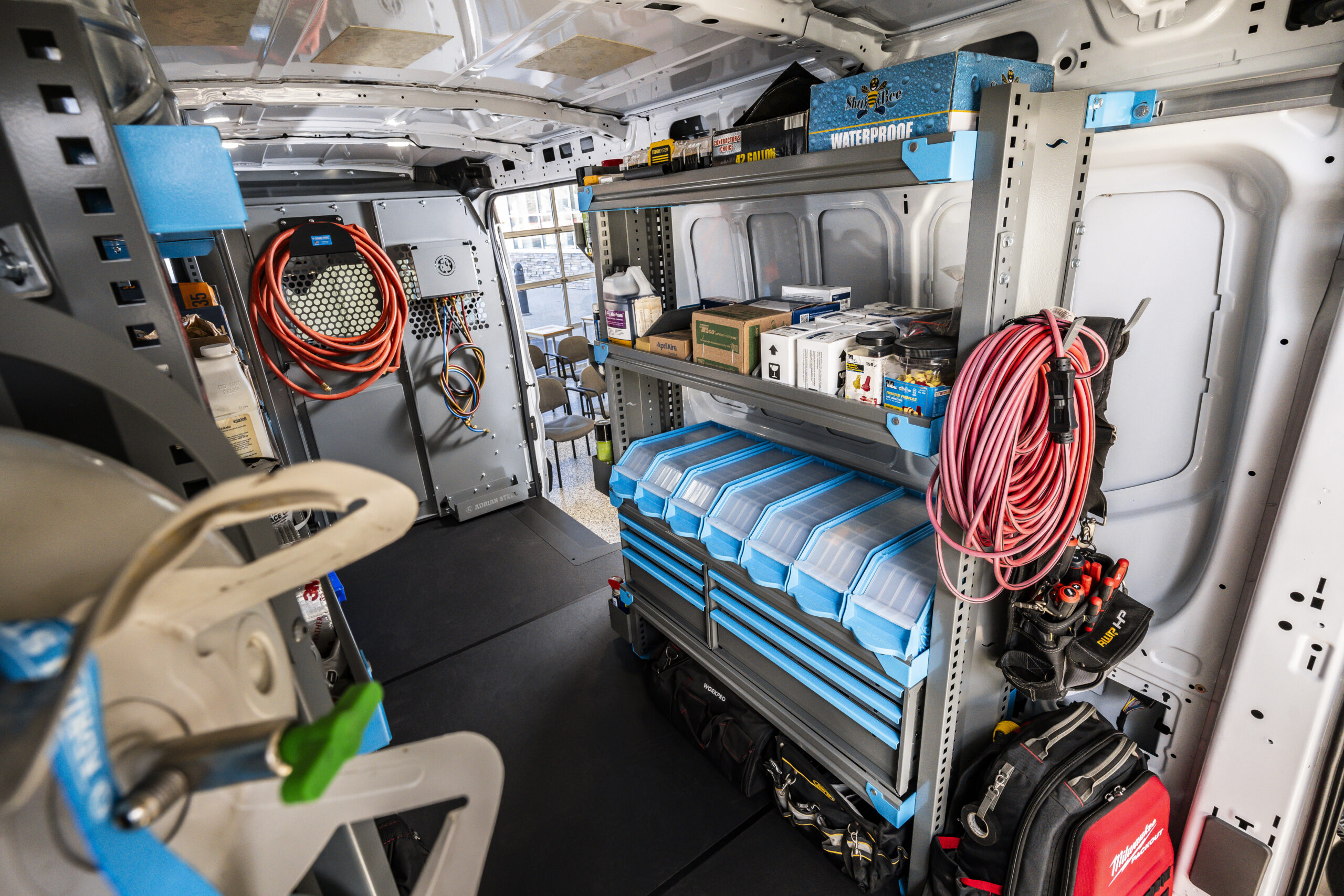 Maximize storage and efficiency with the 2-Drawer Shelving Unit, designed to keep tools, parts, and hardware organized and easily accessible inside your commercial van. Built from heavy-duty steel and finished with a durable powder coating, this unit offers reliable performance for daily use in demanding work environments.