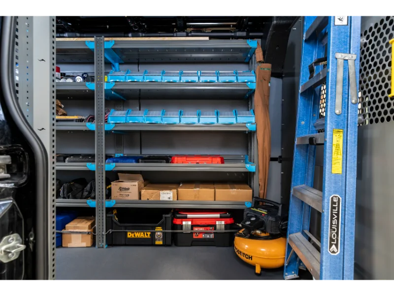 Turn wasted space into working space with shelving designed to fill your vehicle. Our shelves are built to eliminate dead zones and maximize every inch of useable space in your cargo area—giving you more room, more organization, and more capacity to get the job done. Add drawers, bins and cases to fully maximize the storage space on the shelves.