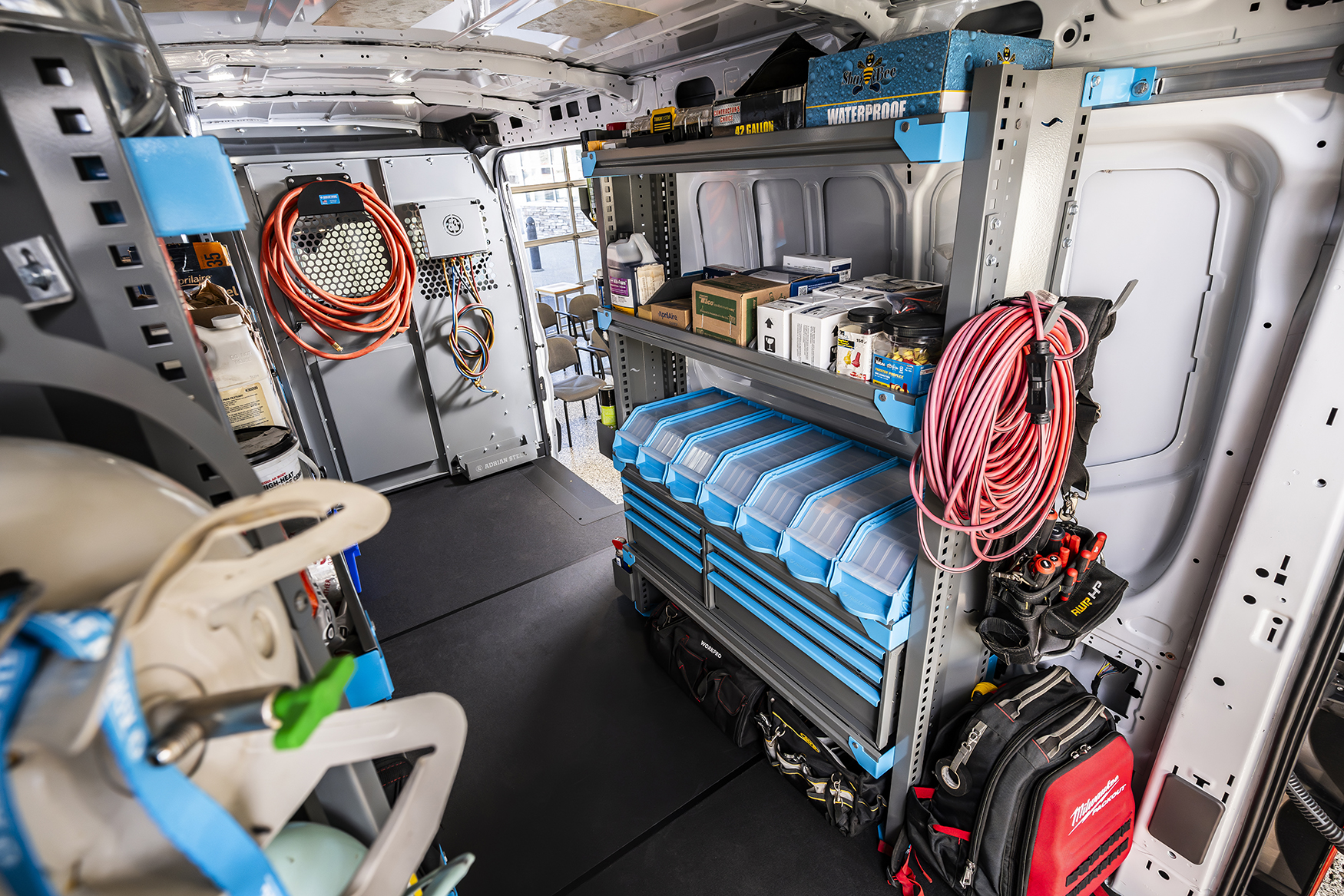 Customize your shelving to your cargo with our lineup of drawer units, door kits, bins, dividers and industry accessories like tank racks, wire holders, parts cases, organizers, work benches and modules. Your local upfit expert can customize your perfect upfit.
