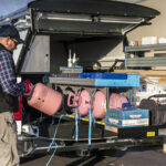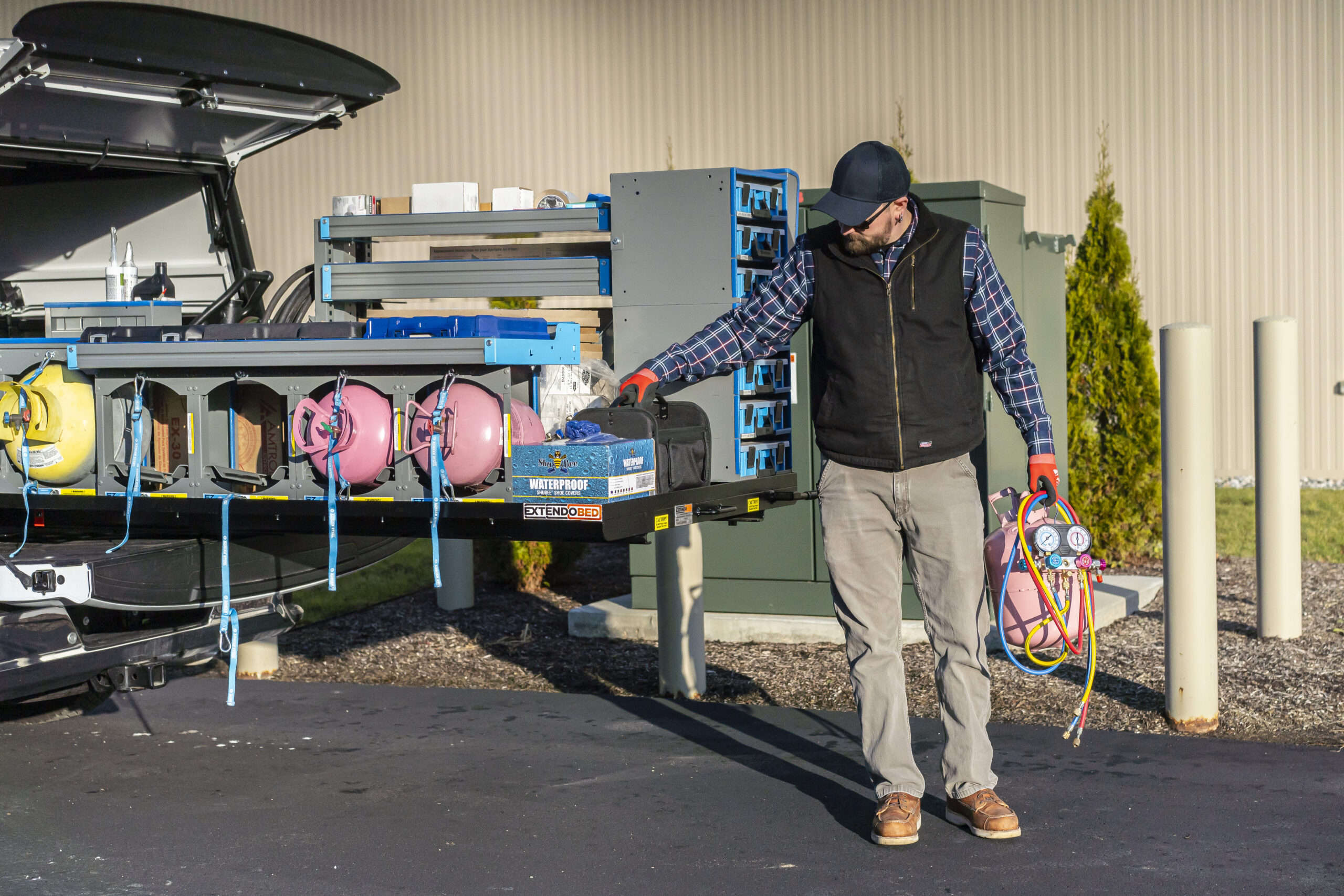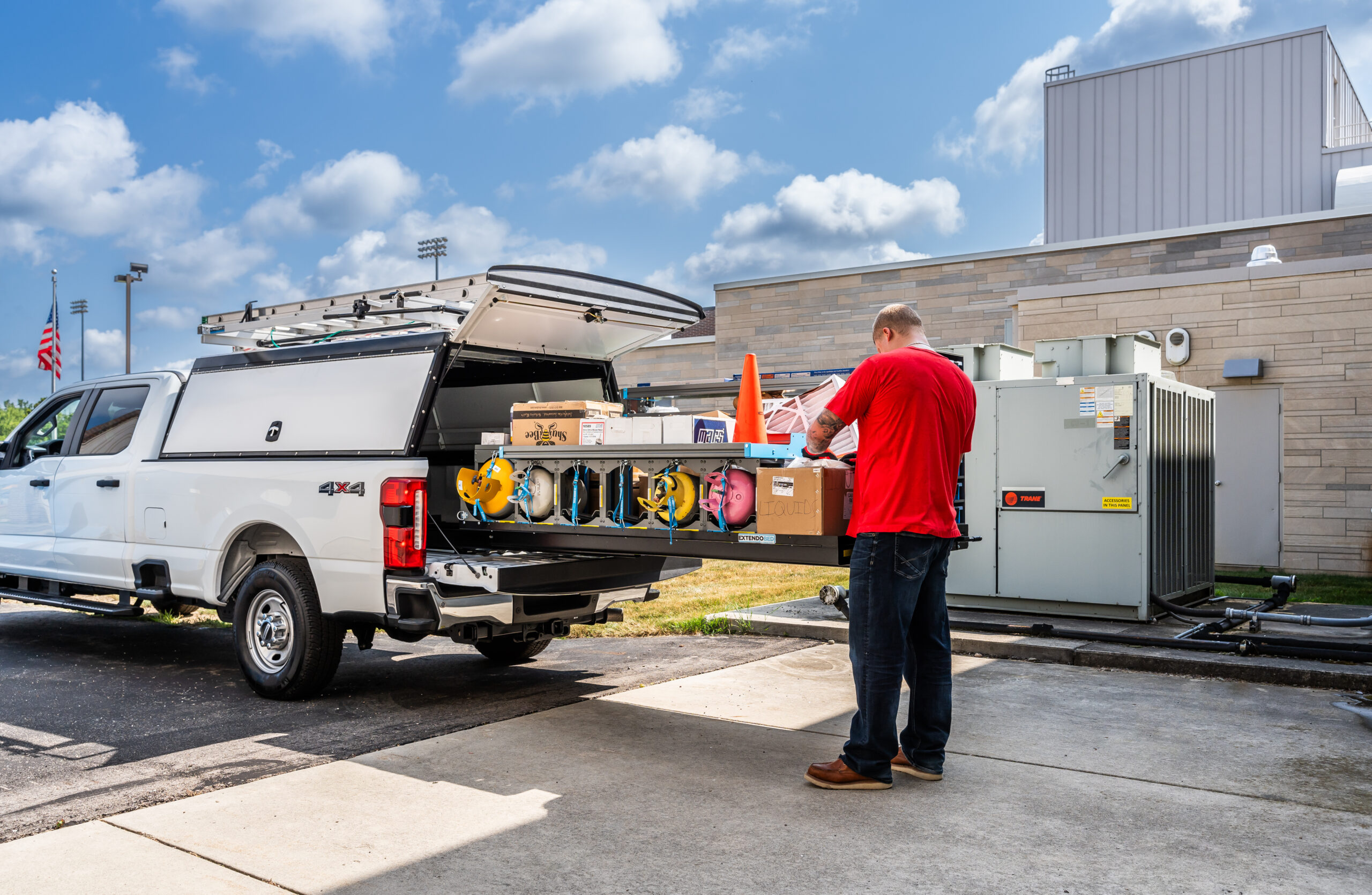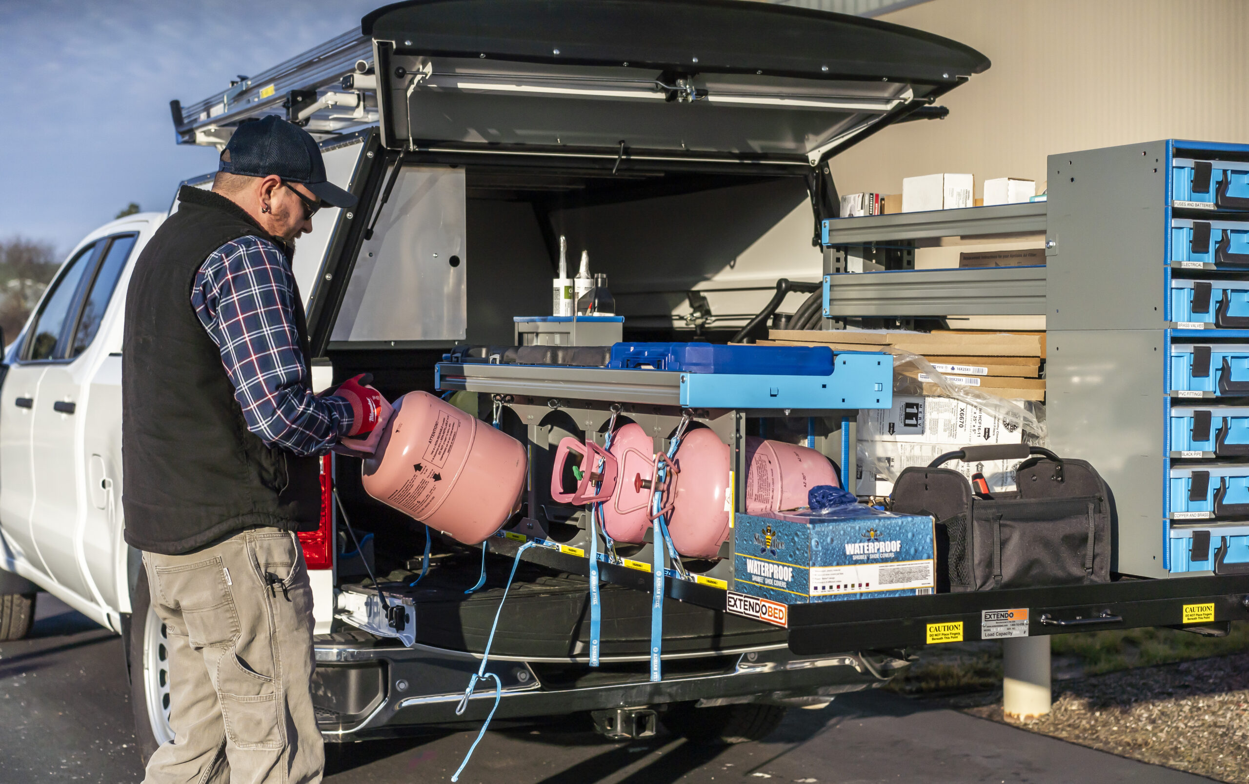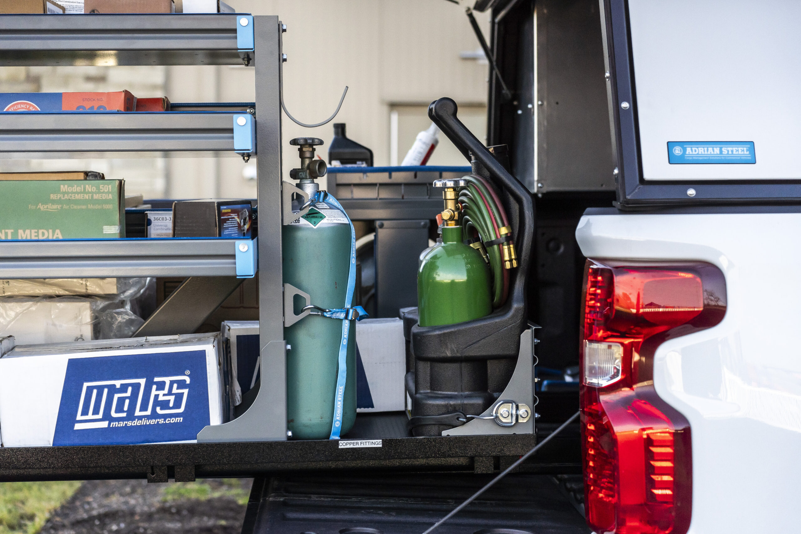 Tanks are heavy and reaching in and out of the truck frequently to access your tanks takes a toll on your body. Our tank storage solutions make your job easier by placing your tanks near the rear of the bed or along the edge of a bed slide for easy access.