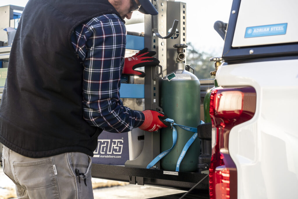 Tanks are heavy and climbing in and out of the van frequently to reach your tanks takes a toll on your body. Our tank storage solutions make your job easier by placing your tanks near the side or rear doors for easy access.