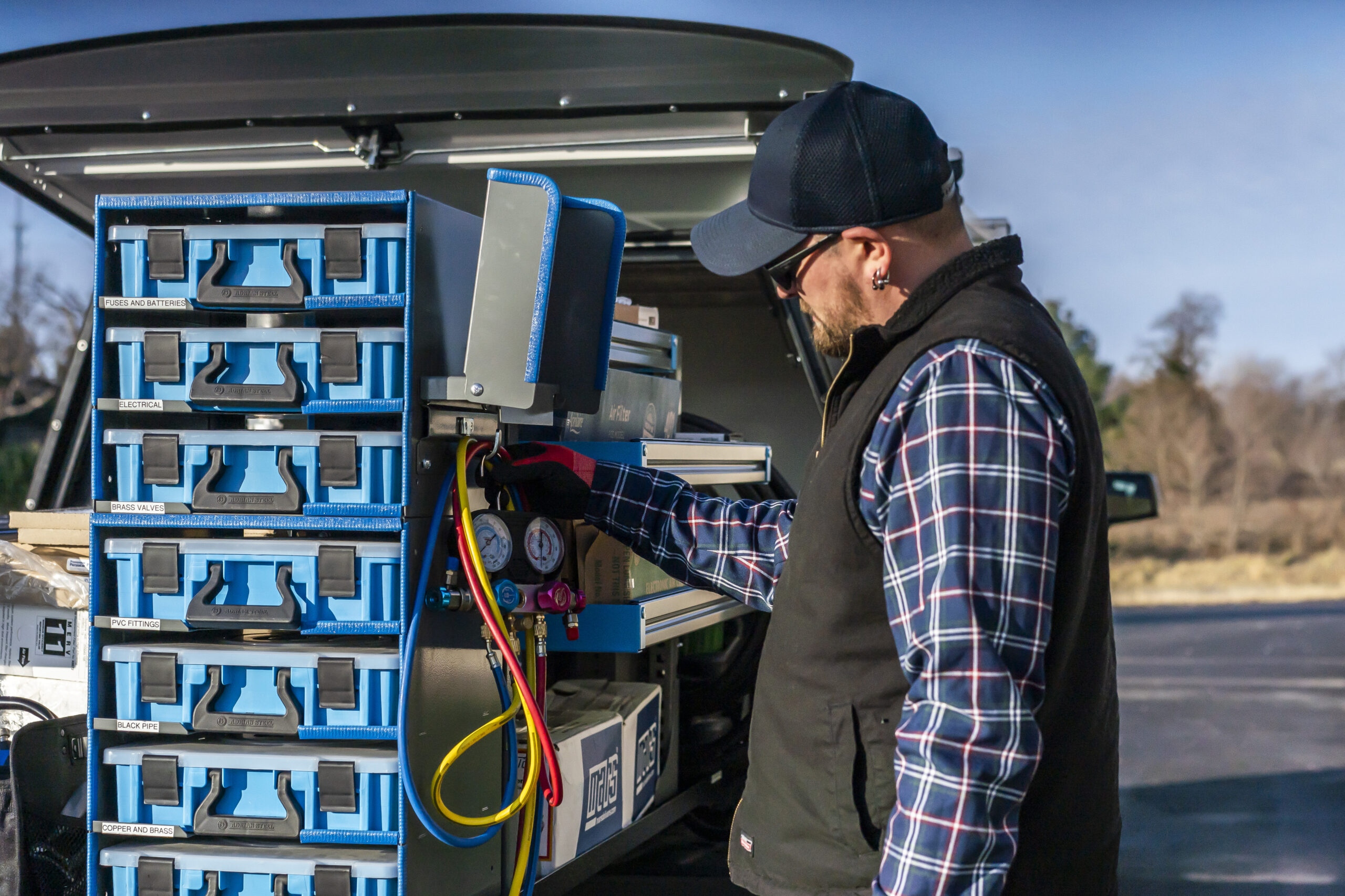 Portable parts cases are essential tools for keeping small components, fasteners, fittings, and hardware neatly organized and easily accessible in service vans and trucks. Typically built from impact-resistant plastic with secure latches and adjustable compartments, portable parts cases are often integrated with racking or shelving systems inside upfitted vehicles. They’re easy to slide in and out, keeping your vehicle interior tidy, efficient, and professional.
