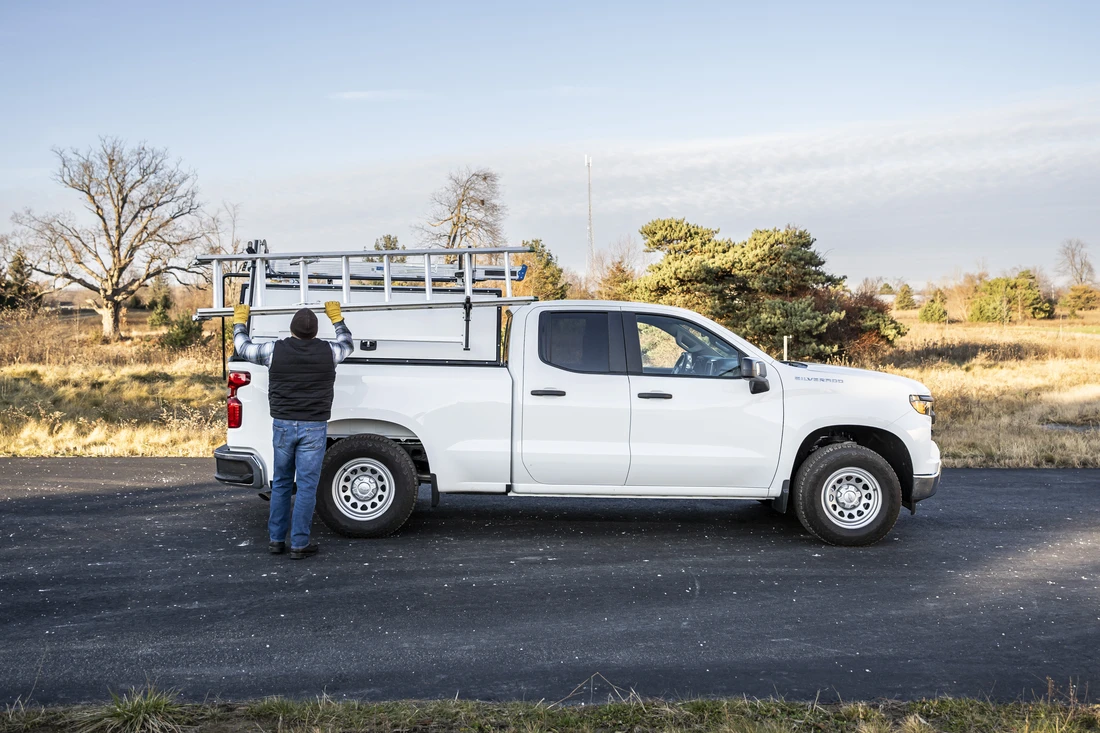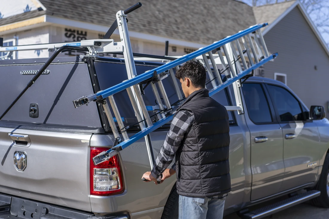 A drop-down rack makes your truck look professional and well-kept — good for those clients who notice.